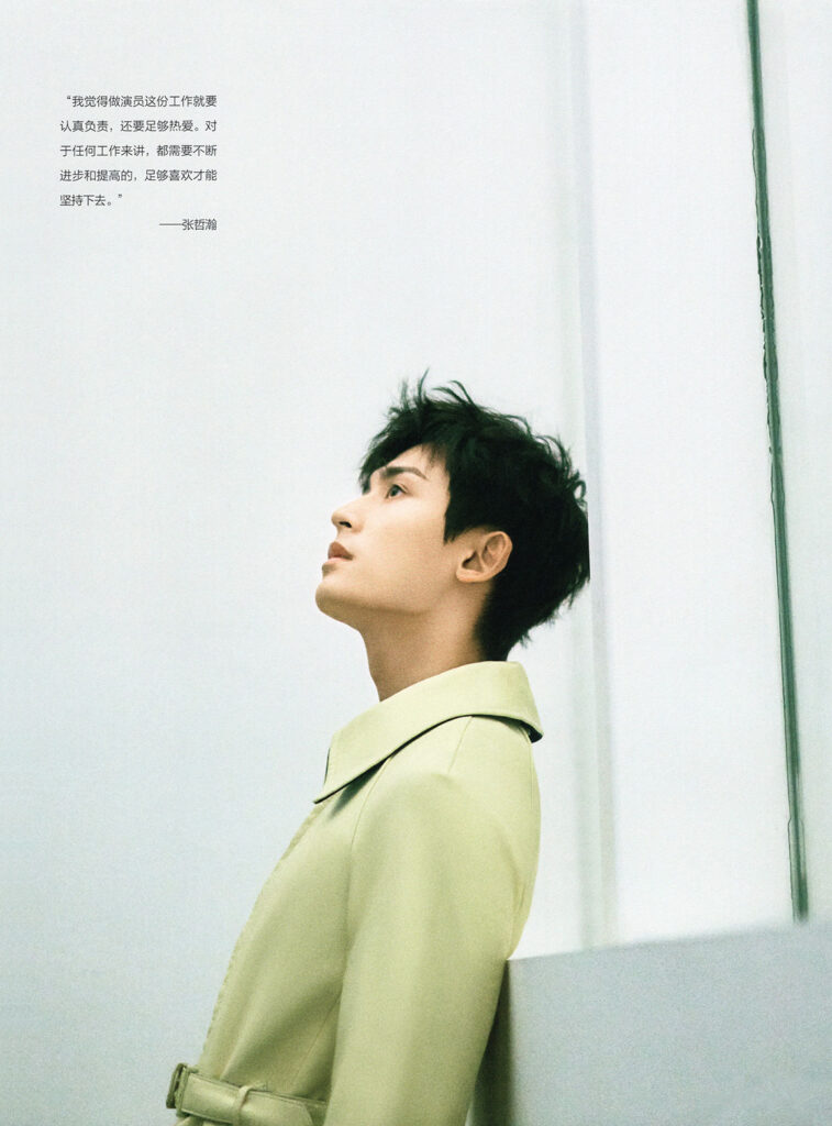 ➤張哲瀚:剛開始的時候主要是多看前輩們的表演, 慢慢學習和摸索。我覺得做演員這份工作就是要認真負責, 還要足夠熱愛。因為很多時候作為演員,或者說對於任何工作來講, 都是需要不斷進步和提高的,足夠喜歡才能堅持下去。